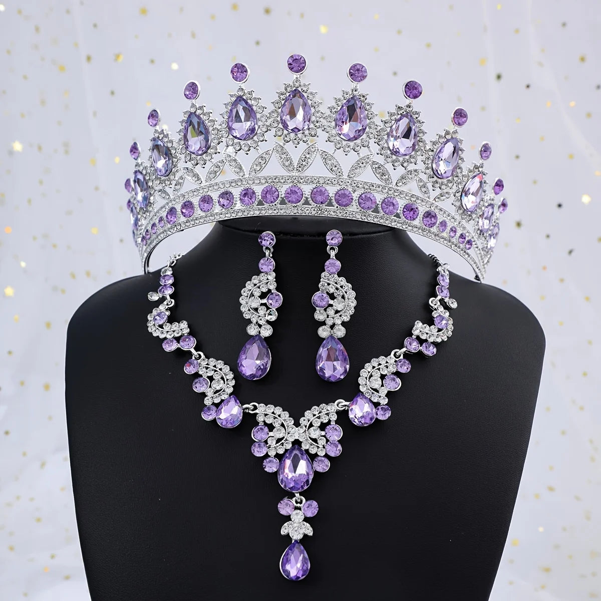 Complete your bridal look with this elegant four-piece jewelry ensemble, featuring a stunning rhinestone-adorned tiara crown paired with coordinating necklace and earrings. Crafted from durable zinc alloy with sparkling crystal accents, this fashion jewelry set delivers timeless sophistication for weddings and special occasions. The versatile design complements any bride's aesthetic while offering exceptional value as a comprehensive gift set. Perfect for creating a cohesive, polished appearance on your most important day.