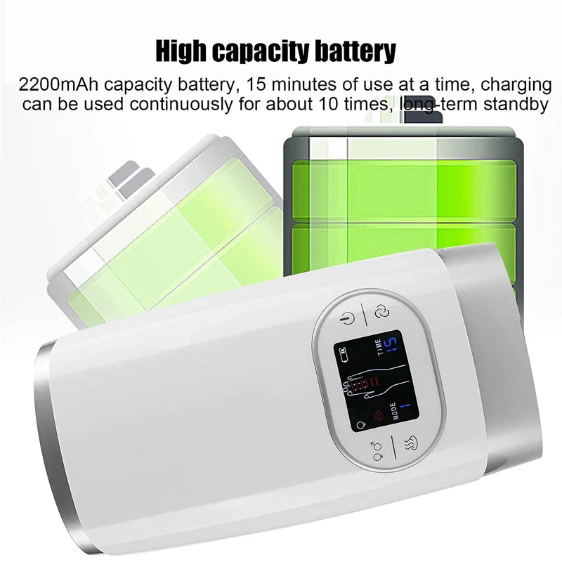 Discover professional-grade hand therapy with this intelligent air compression massager, engineered to deliver spa-quality relief wherever you need it. The extended 30cm massage chamber provides comprehensive coverage from wrist to fingertips, utilizing advanced air pressure and heat compression technology to stimulate acupoints with a natural waving rhythm that effectively alleviates hand pain and releases muscle tension. Designed for those suffering from arthritis, carpal tunnel syndrome, or repetitive strain—including office workers, manual laborers, and caregivers—this device combines multi-layer airbag technology with soothing 45°C thermal therapy. The rhythmic inflate-deflate mechanism works in tandem with interior massage nodes to target deep tissue while promoting enhanced blood circulation, reducing numbness, soreness, and stiffness. Customize your experience with dual sizing modes (male and female) and three adjustable intensity levels, all controlled via an intuitive LCD display. The 2200mAh lithium battery powers cordless operation for up to 10 days on a single charge, with convenient USB recharging via adapter, computer, or laptop. An intelligent 15-minute auto-shutoff ensures safe, consistent sessions. Measuring 11×30×16cm and constructed from durable ABS material, this compact yet powerful massager targets fingers, knuckles, palms, hand backs, and wrists. Every purchase includes a 60-day return guarantee and comprehensive one-year warranty, making it a risk-free investment in your hand health and daily comfort.
