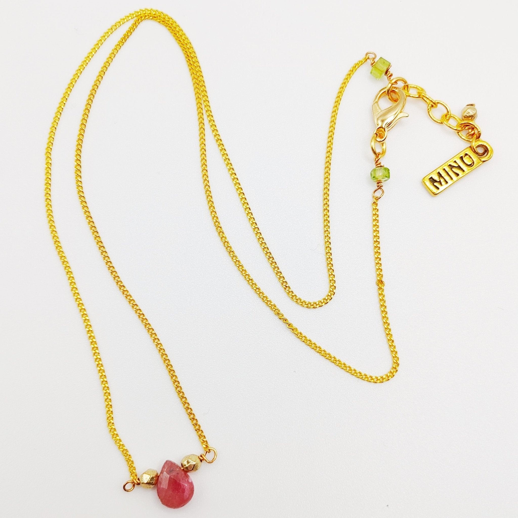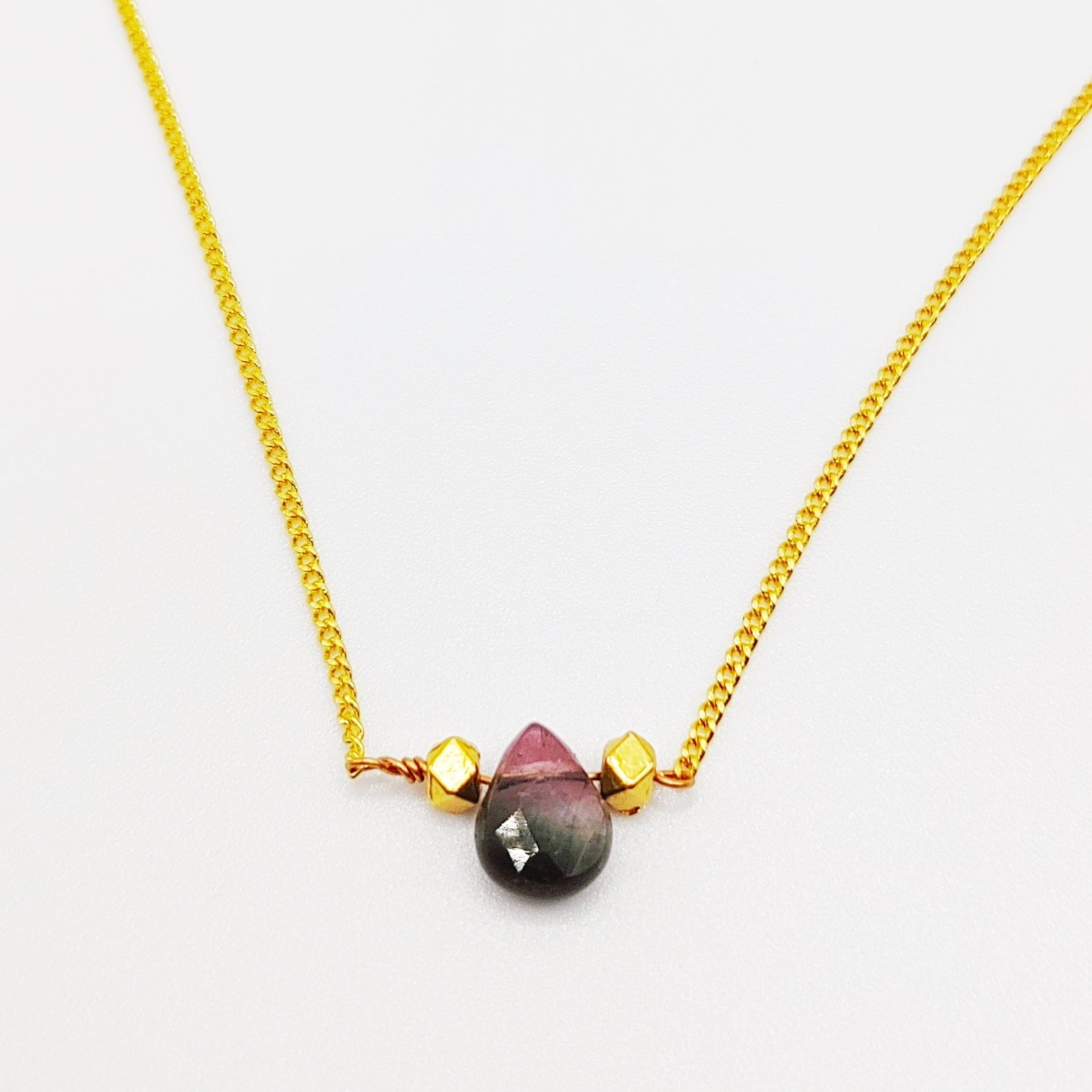 Simple and sweet faceted teardrop tourmaline necklace and earrings with golden or silver nugget bead accents, chain and findings.