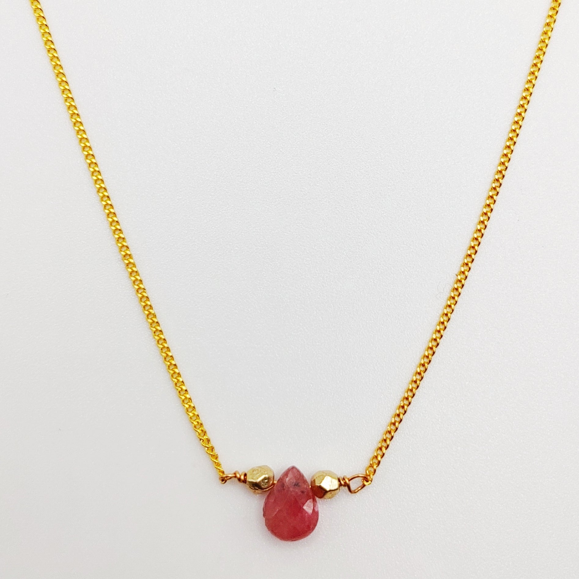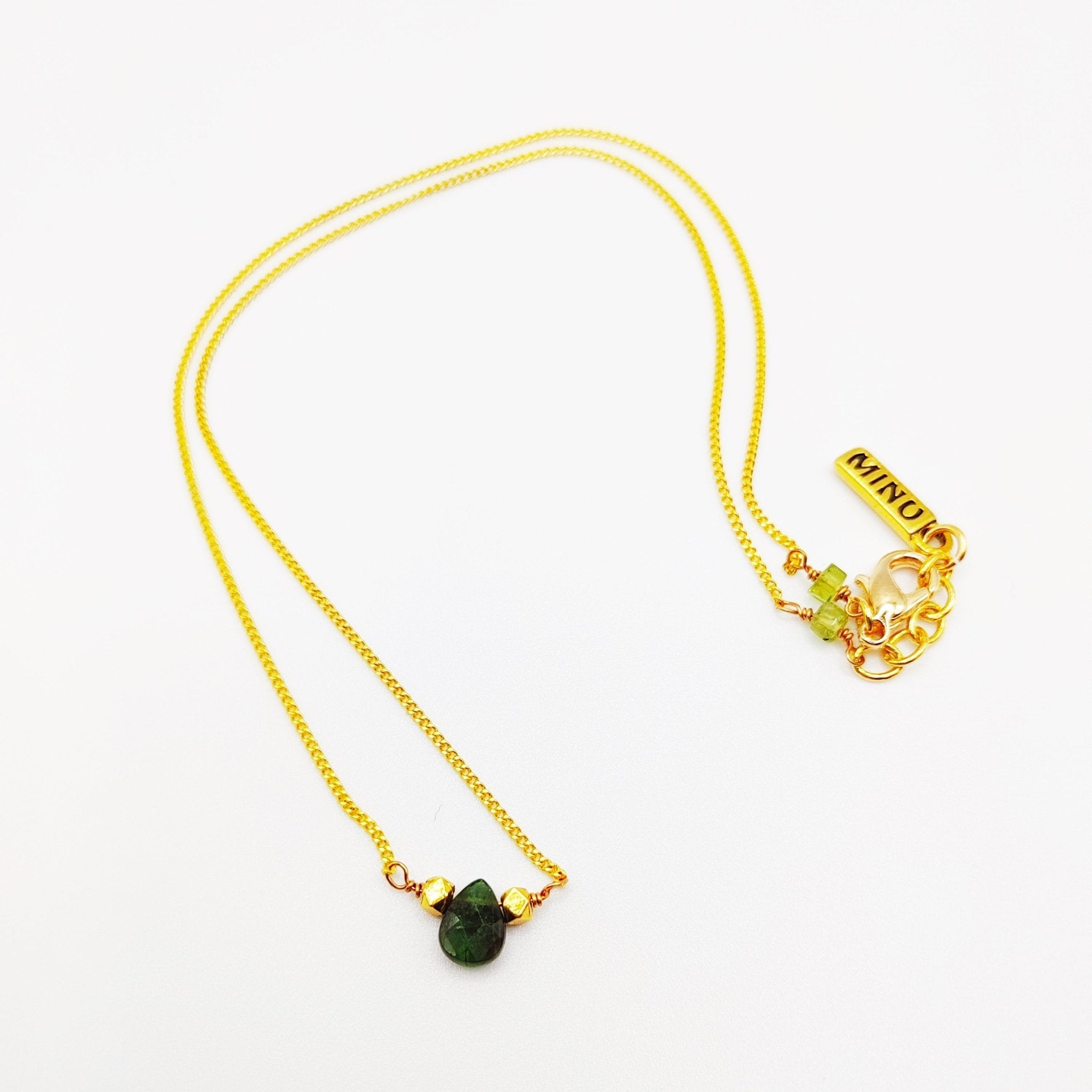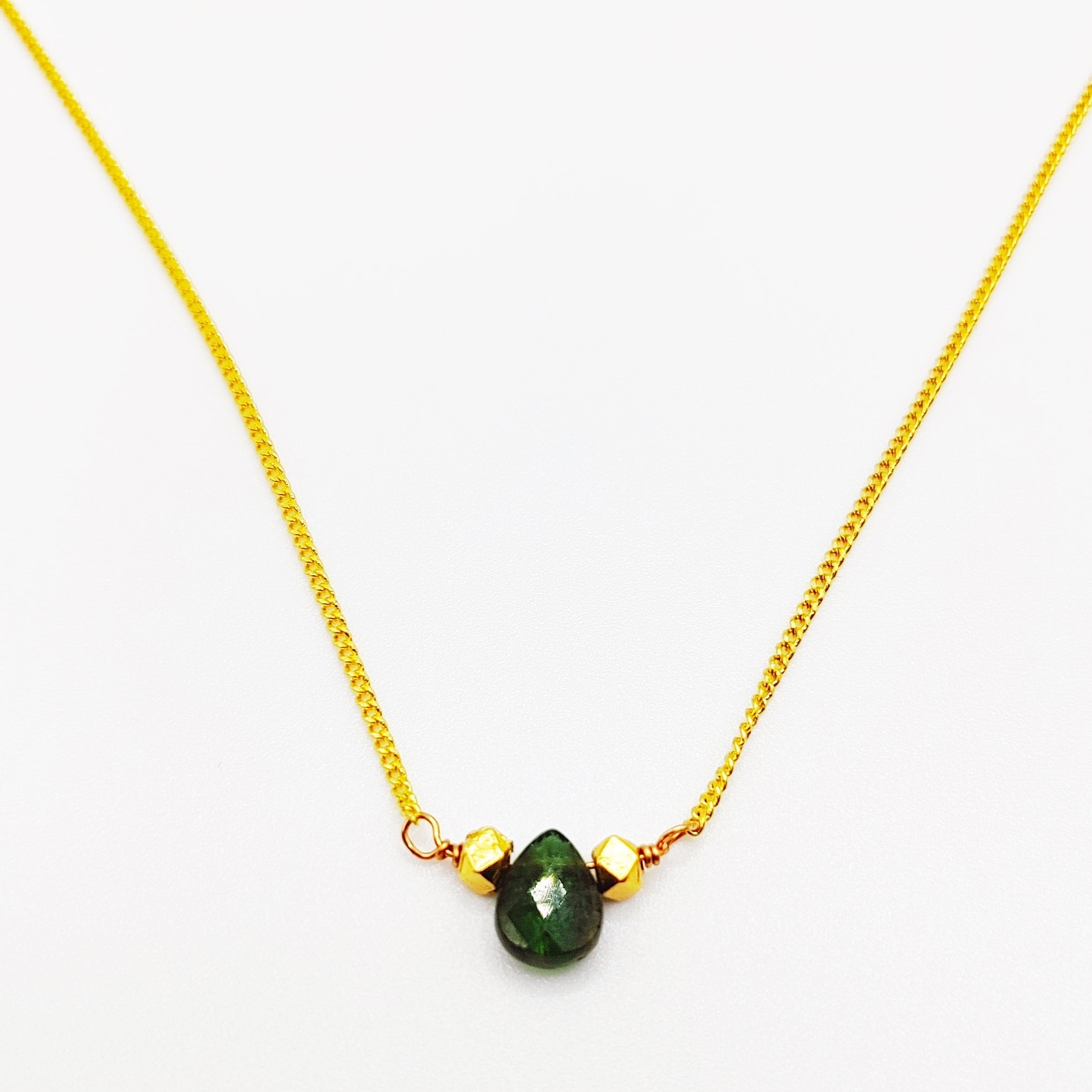 Simple and sweet faceted teardrop tourmaline necklace and earrings with golden or silver nugget bead accents, chain and findings.