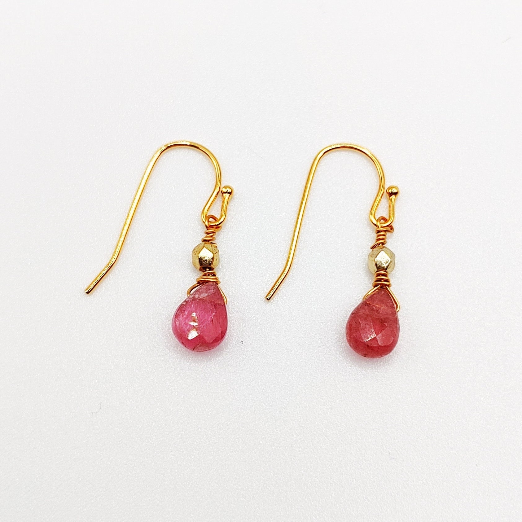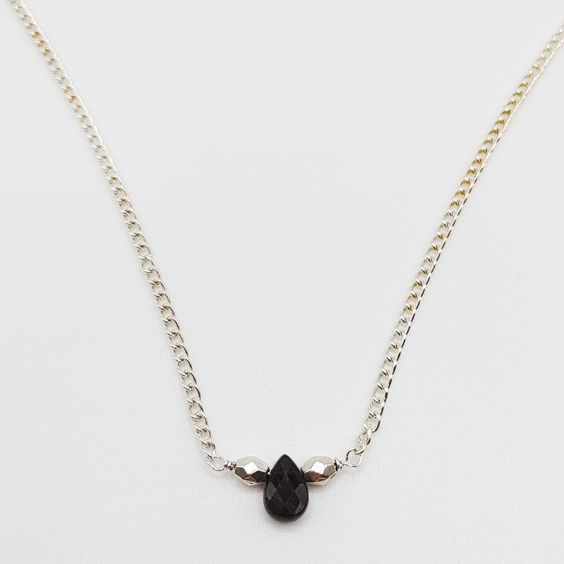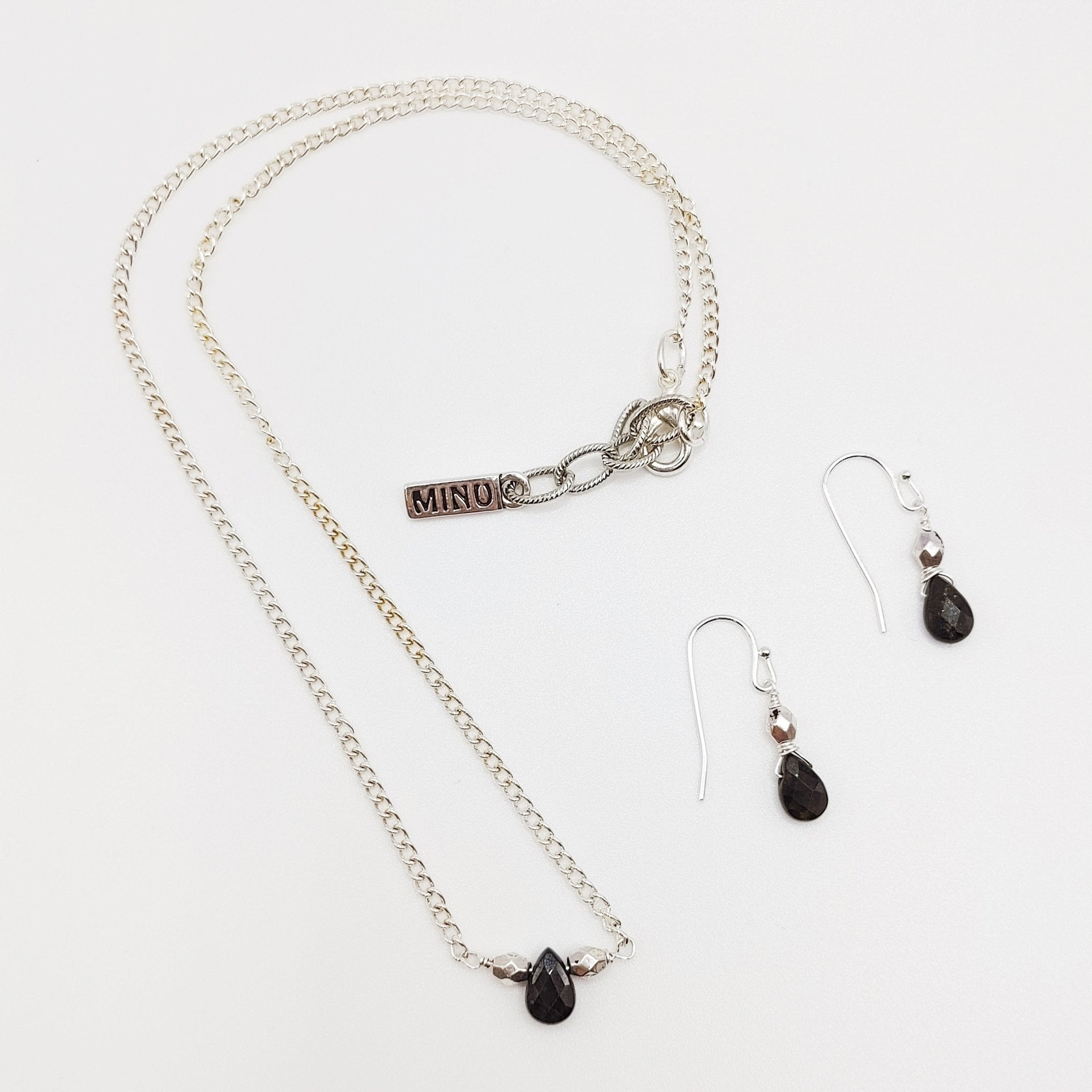 Simple and sweet faceted teardrop tourmaline necklace and earrings with golden or silver nugget bead accents, chain and findings.