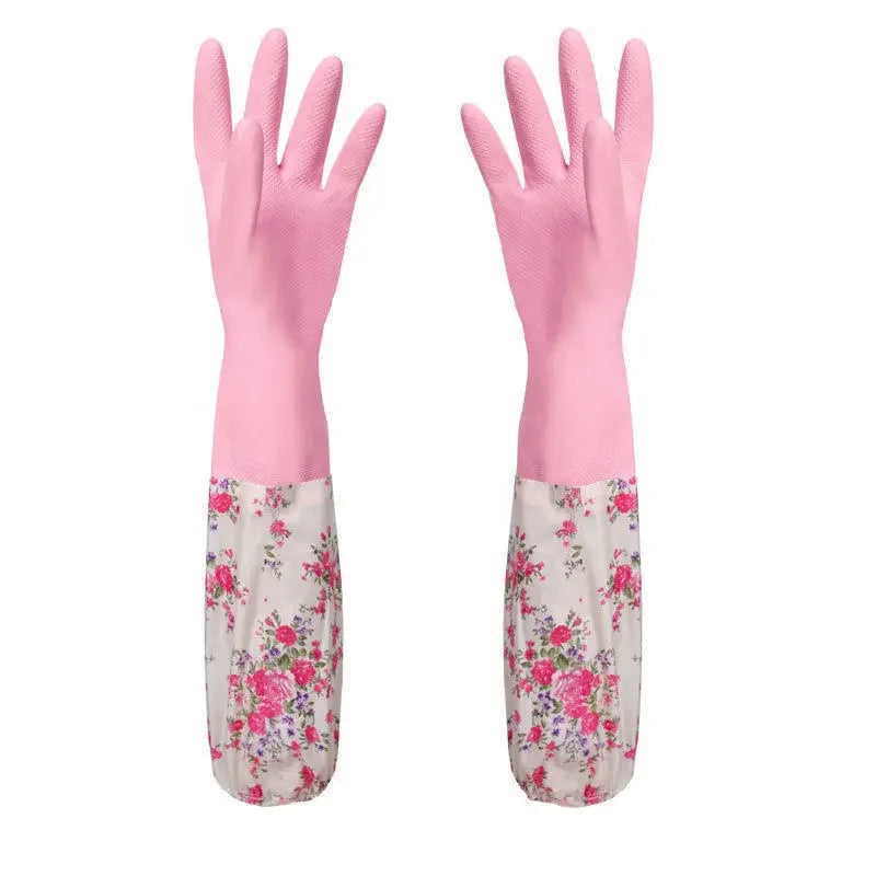 These long rubber gloves are designed to provide warmth and comfort in cold weather, making them perfect for household tasks such as dish washing and cleaning. The velvet lining keeps hands warm in temperatures ranging from -20 to 70 degrees, while the elastic ribbons on the long sleeves prevent them from getting wet. These gloves are also resistant, flexible, and unbreakable, with a beautiful color and elegant appearance. The unique non-slip texture design increases holding force and makes them easy and convenient to use. Each pair is 49.5cm in size and made of rubber and velvet. Available in a variety of colors. Package includes 1 Pair of Household Gloves.