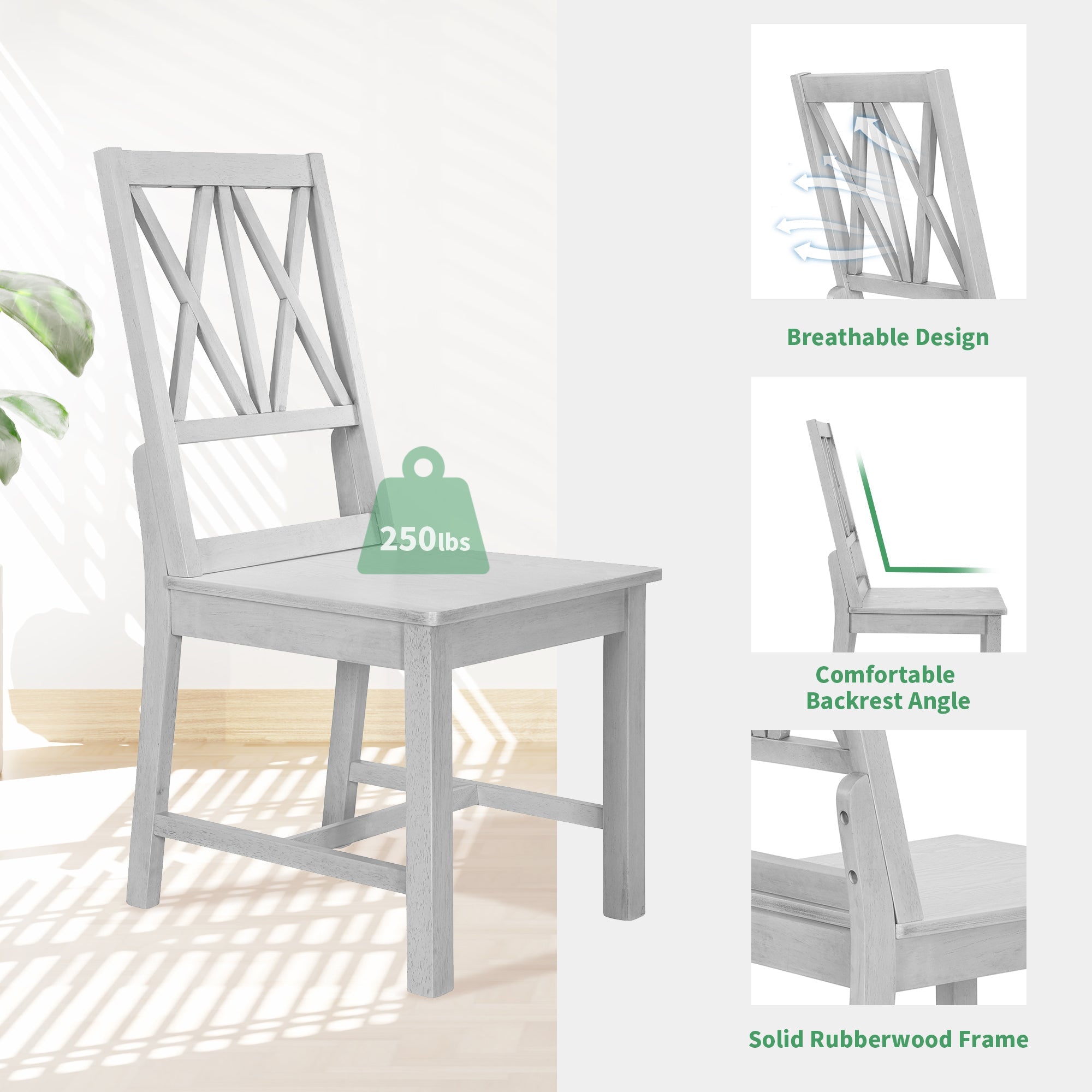 • [Solid Wood Construction] Crafted from MDF and rubberwood, this dining table set boasts durability and style. The tabletop features ash wood veneers, a premium choice for craftsmen, ensuring timeless quality. With solid wood chair legs and stylish backs, stability and durability are guaranteed. Each piece can support up to 250lbs, providing safety and reliability. Expertly designed and built, this set offers both functionality and elegance for any dining space.