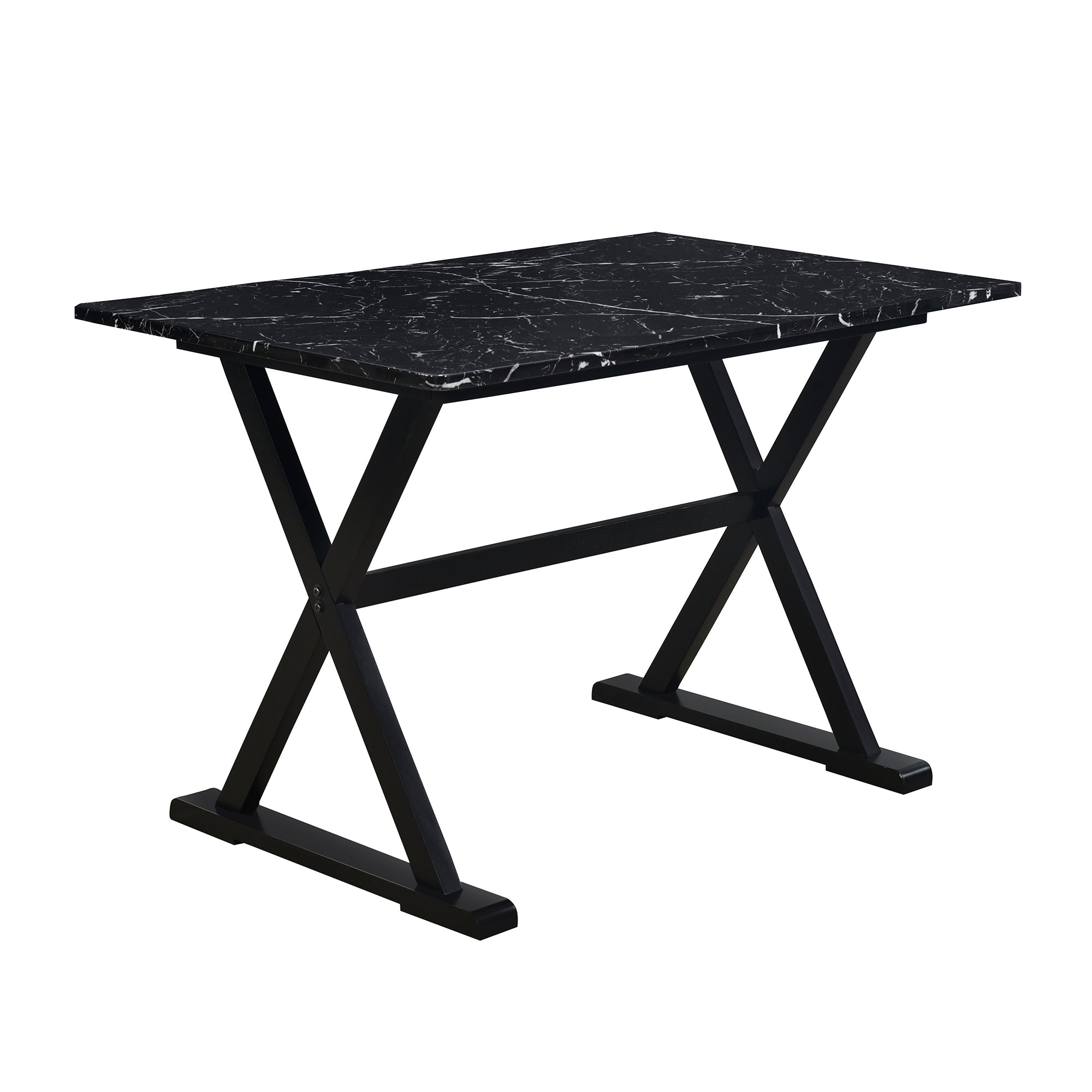 For this dining set, the faux marble top exudes an air of refinement.The table's surface is carefully crafted to emulate the stunning veining patterns and glowing texture of genuine marble, creating a captivating focal point in the dining area. This table is also low-maintenance.