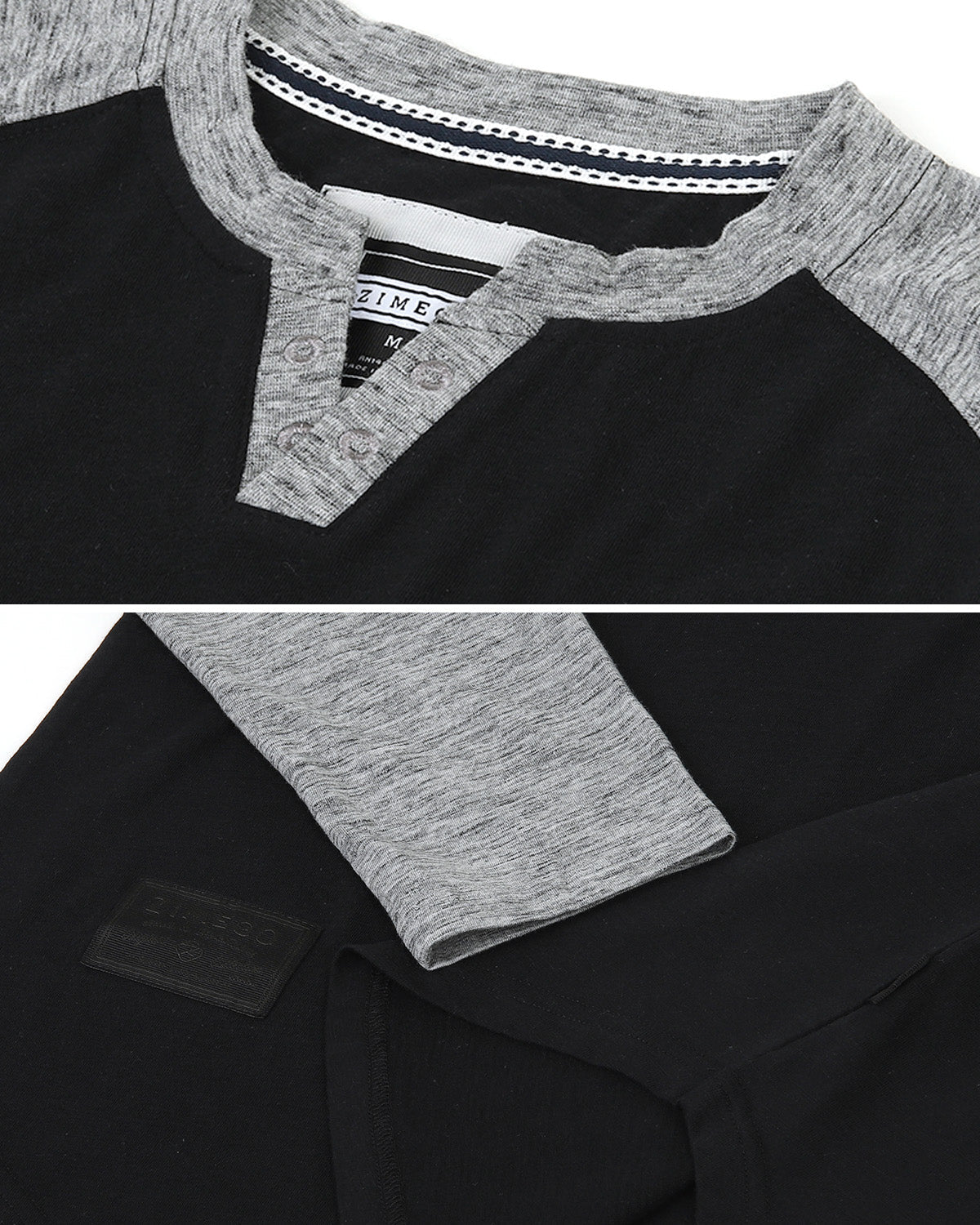 • DETAIL - Button is just a decoration. Two Tone Colorblock Raglan T-shirt with V cut neck