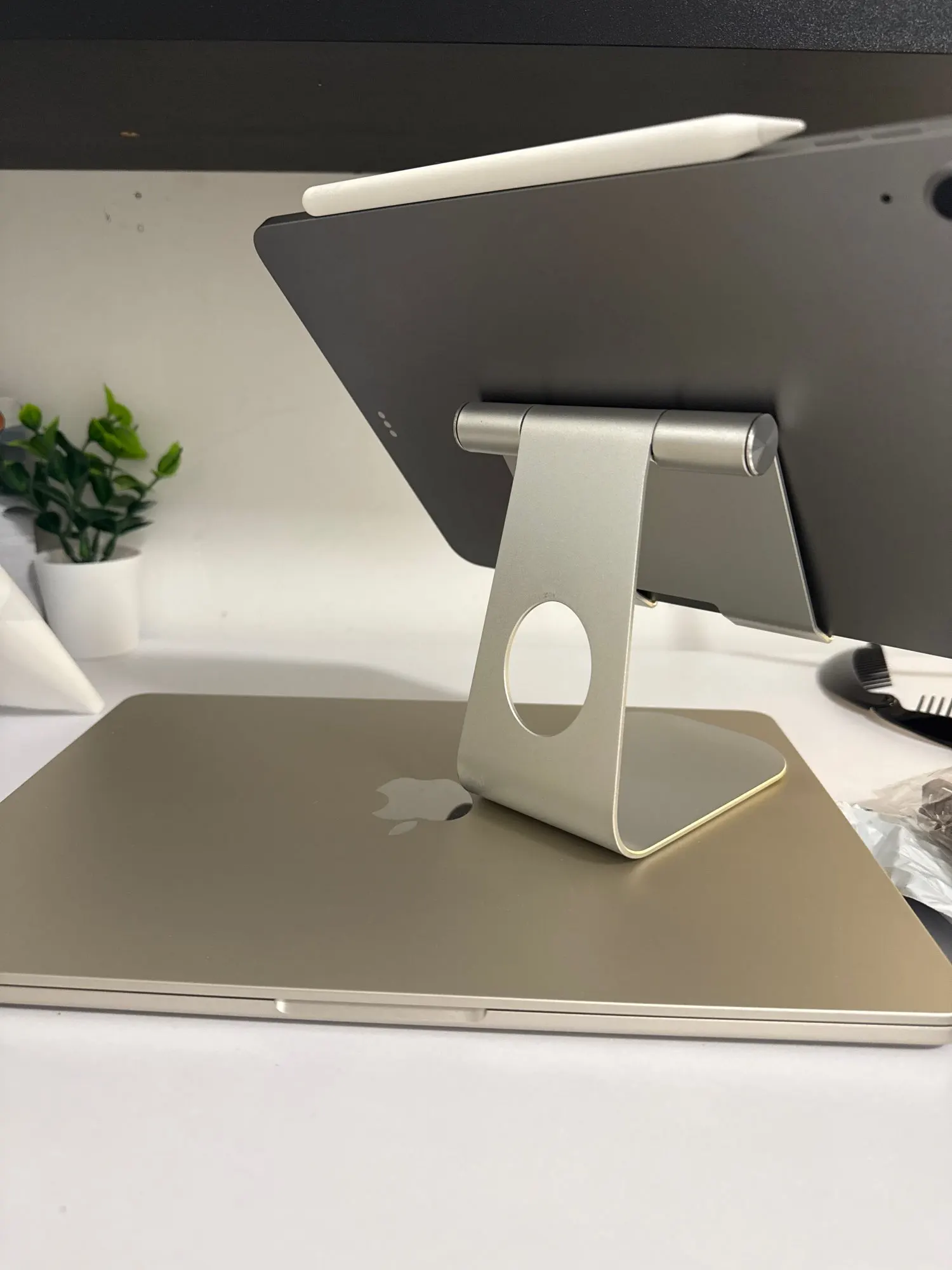 Universal tablet stand engineered for devices 4-13 inches, including iPad Pro, Air, Mini, Samsung Galaxy Tab, and Kindle. Features adjustable viewing angles for both portrait and landscape orientation, perfect for gaming, streaming, video calls, or productivity work. Constructed from aerospace-grade aluminum-titanium alloy and reinforced steel for durability without added weight. Protective rubber pads safeguard your device from scratches and prevent slipping. Accommodates tablets up to 18mm thick (with case). Backed by lifetime warranty for peace of mind.