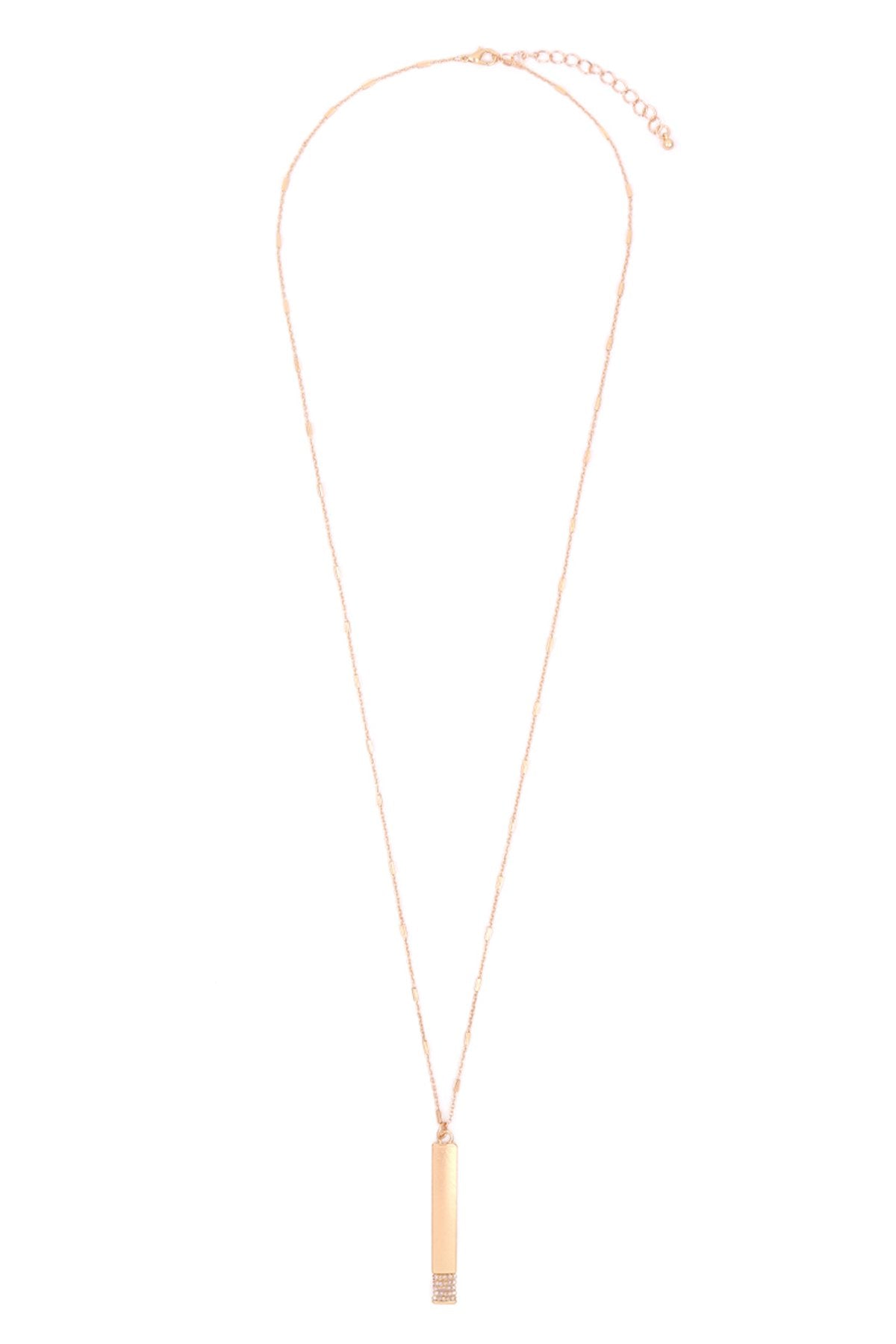 - 31.25" Length, 3" Extender, Pendant: 2.5" Length, 0.375" Width